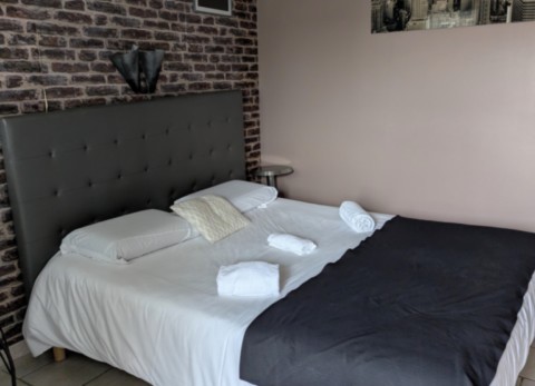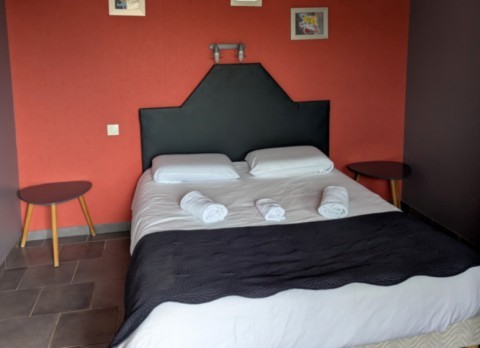 Chambre avec son lit double de 160cm, pour 2 personnes.