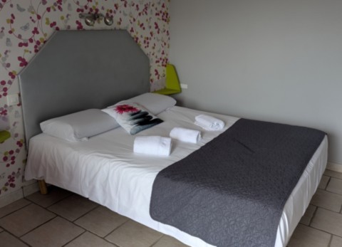 Chambre avec son lit double de 140cm, pour 2 personnes.